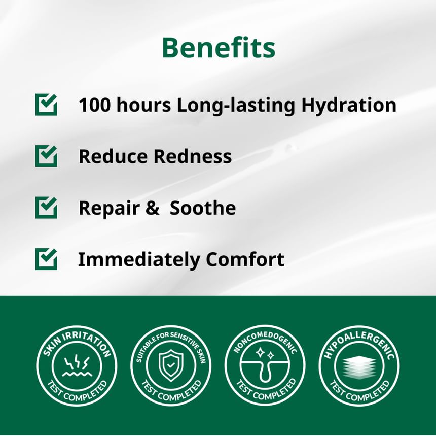 - Formulated with 5-Cica Complex (madecassoside, madecassic acid, asiaticoside, asiatic acid and centella asiatica extract) to hydrate sensitive skin